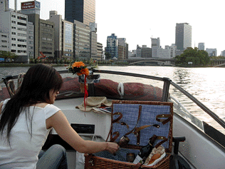 大川での船上ランチ(写真:左)