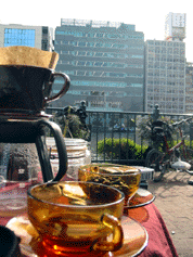 冬の剣先公園にやかんの湯気と珈琲の香りが漂っていました。