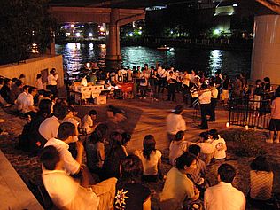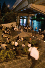 大阪の夏の夜の水辺を楽しもうと水辺に集まるきっかけを作るための呼びかけに、今年も多くの人が集まりました。