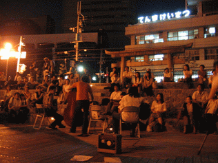今年は、どちらかというと若松の浜の方に人が多く集まり、若松の浜の階段に座って、川に向かっておしゃべりをしているのが印象的でした。